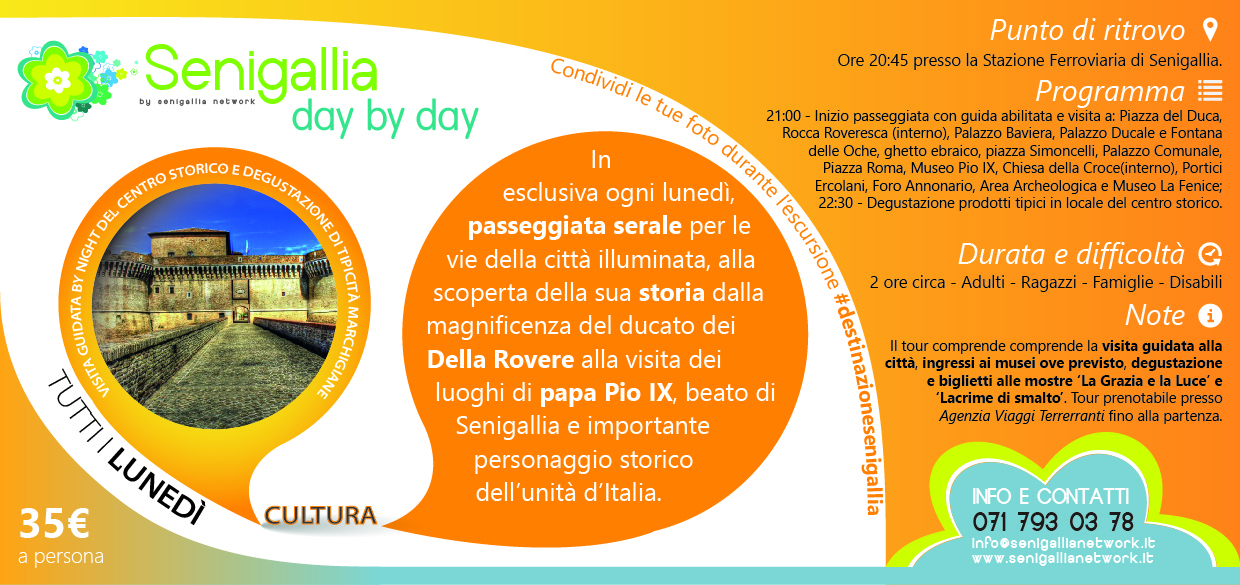 Il meglio dell’escursionismo locale, Senigallia Day By Day, dal lunedi al venerdi e il sabato eventi a sorpresa. Itinerari d’Arte, storia, cultura, spiritualità, natura, mare, enogastronomia, offerti dalla prima rete di servizi escursionistici di destinazione delle Marche. http://www.senigallianetwork.it/ #piccoloèbellomafarereteèmeglio