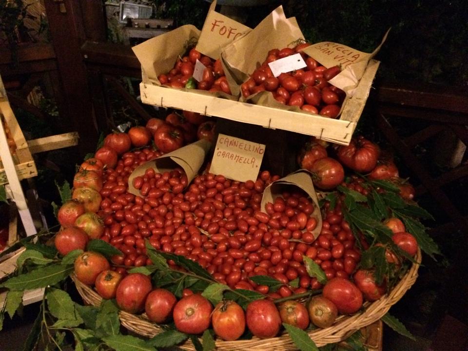Pennoni di Gragnano lardiati, verdure dell’orto sarnese, formaggi podolici dell’Alta Irpinia, frittate di patate, polpette al sugo come si facevano una volta, mozzarella di bufala e pomodorini (oltre 40 varietà di pomodoro, come il cannellino “caramella” e gli introvabili gialli “Già giù”), sott’olio di funghi, melenzane ed olive, il tagliere del contadino, fagioli neri e riso venere e la famosa cassata vesuviana…… senza parlare delle birre d’abbazia e le trappiste (la cruda). Naturalmente il tutto viene sempre documentato da Fofò che tra un piatto ed un altro vi chiede come state.