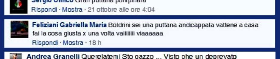 Frasi oscene e violente rivolte alla Boldrini su Facebook