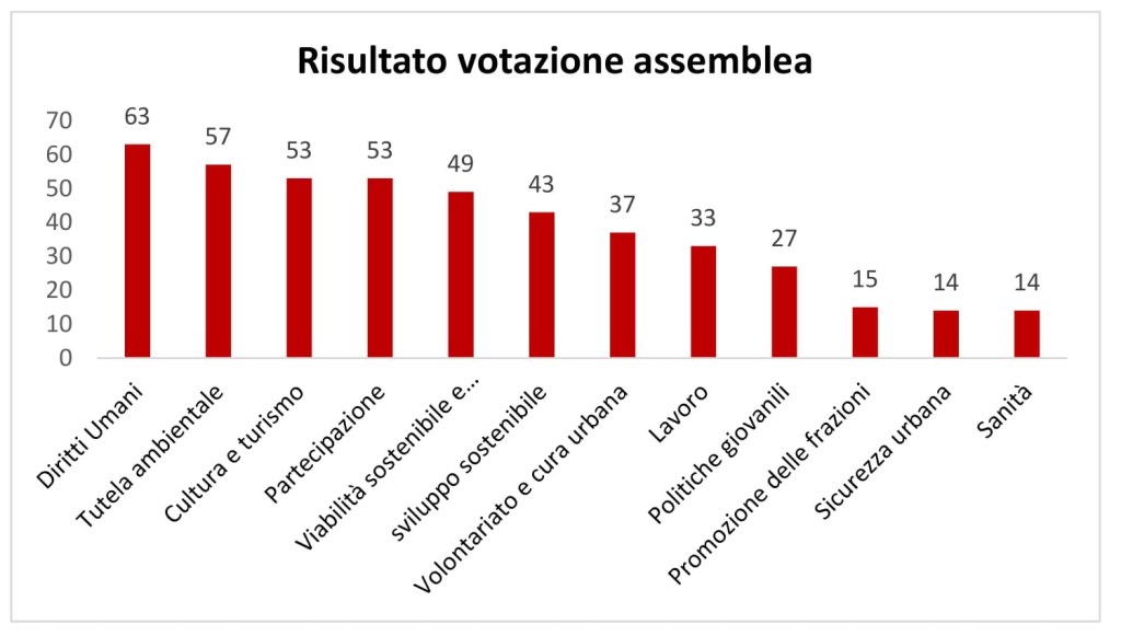 Nella tabella sono riportati i dodici titoli che raccolgono una pluralità di argomenti tutti degni di attenzione. Per citarne qualcuno, si va dai diritti umani alla tutela ambientale, dalla cultura e turismo alla questione della partecipazione (leggi Centri Civici). Maggiori dettagli sul Forum si trovano qui